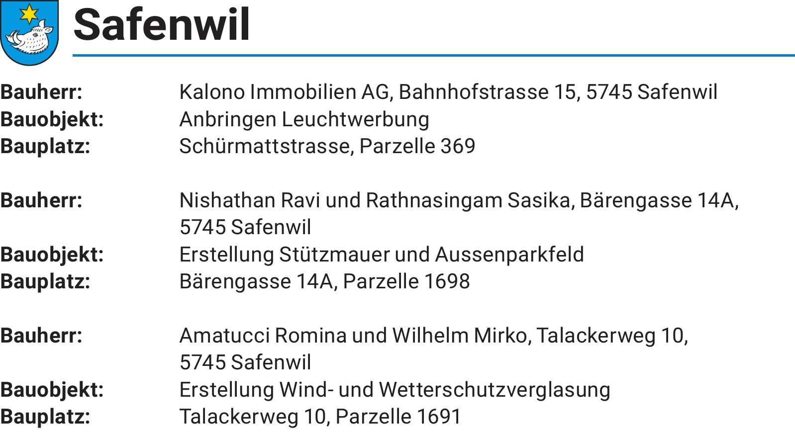 Sie sind hier: Home > Baugesuche > KW24_2024 – Safenwil