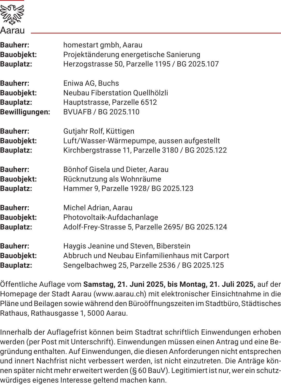 Sie sind hier: Home > Baugesuche > KW25_2025_Aarau