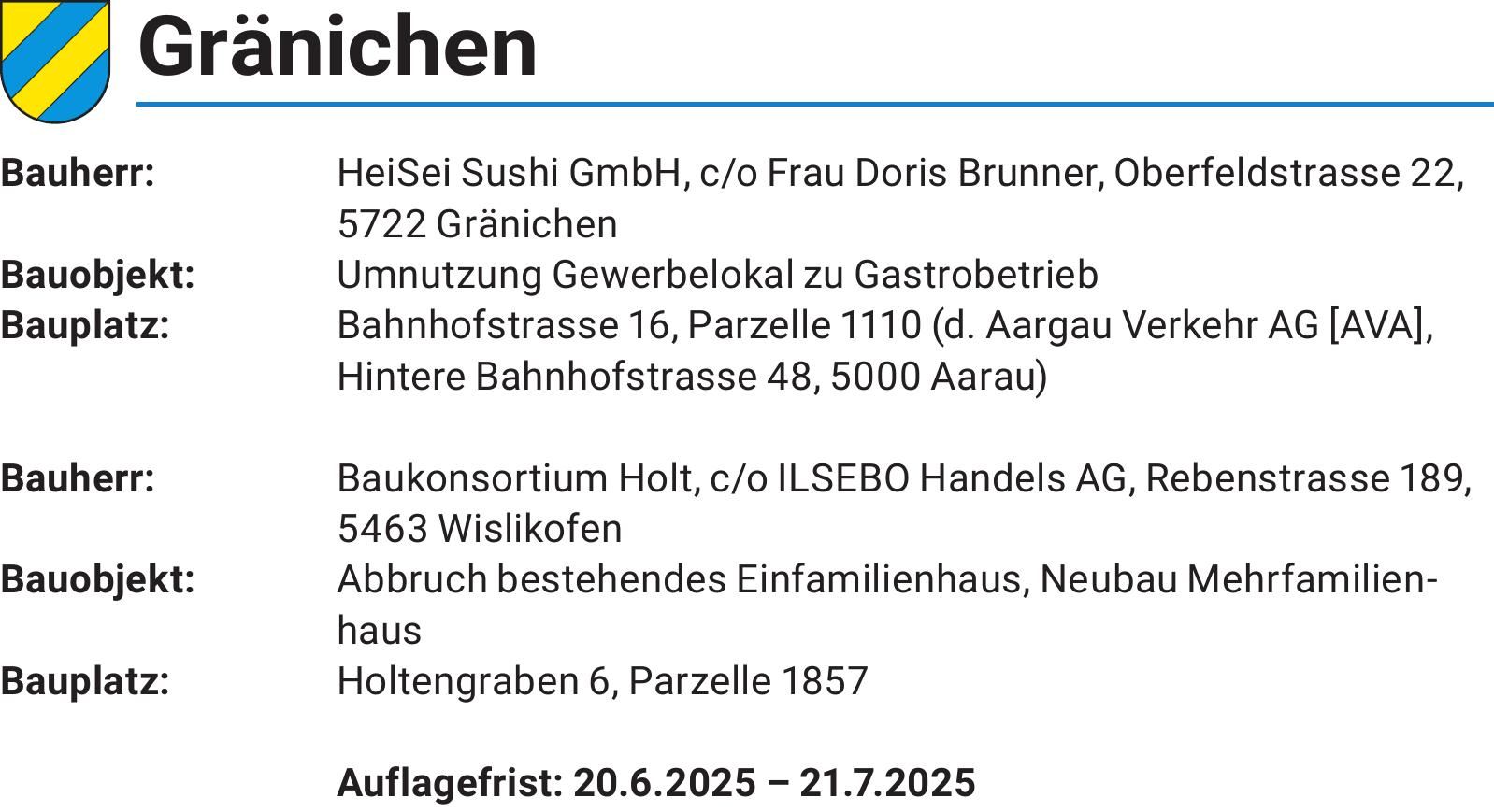 Sie sind hier: Home > Baugesuche > KW25_2025_Gränichen