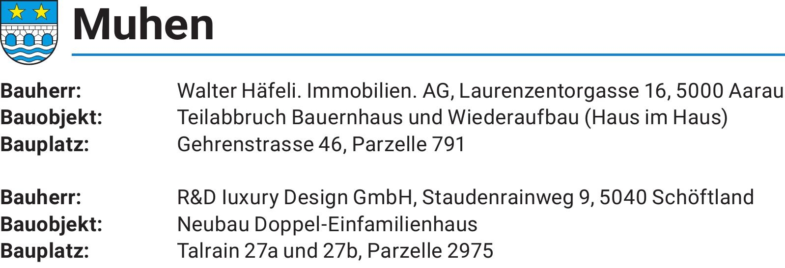 Sie sind hier: Home > Baugesuche > KW27_2023 – Muhen
