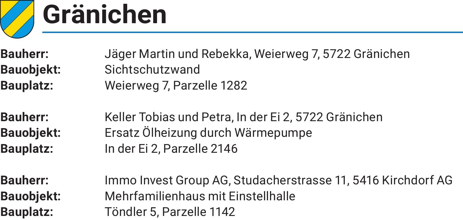 Sie sind hier: Home > Baugesuche > KW28_2023 – Gränichen