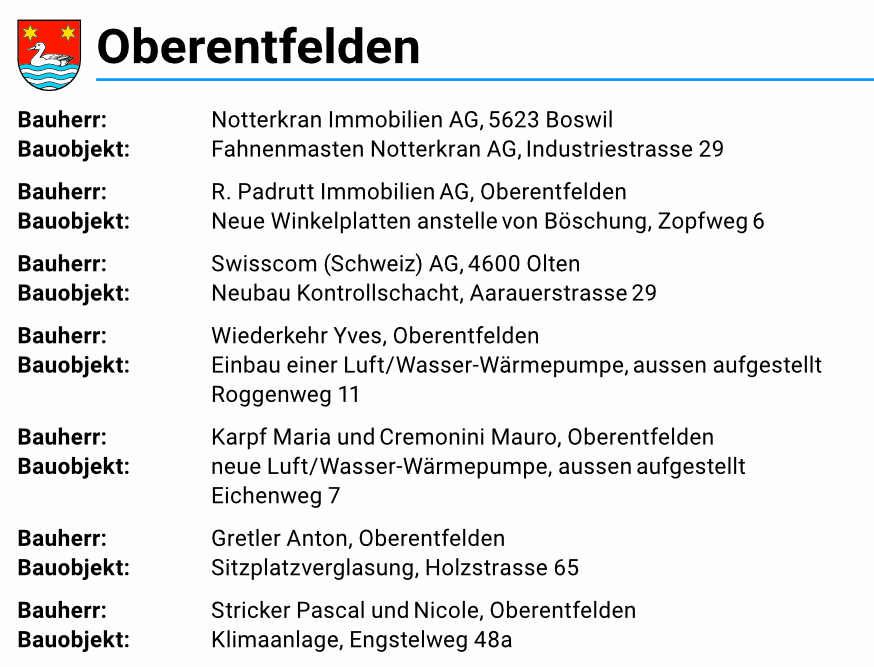 Sie sind hier: Home > Baubewilligungen > KW29_2024_Oberentfelden