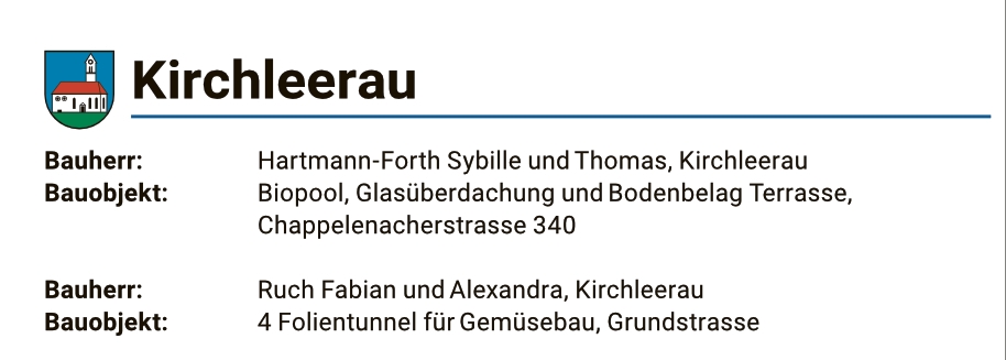 Sie sind hier: Home > Baubewilligungen > KW30_2023 – Kirchleerau