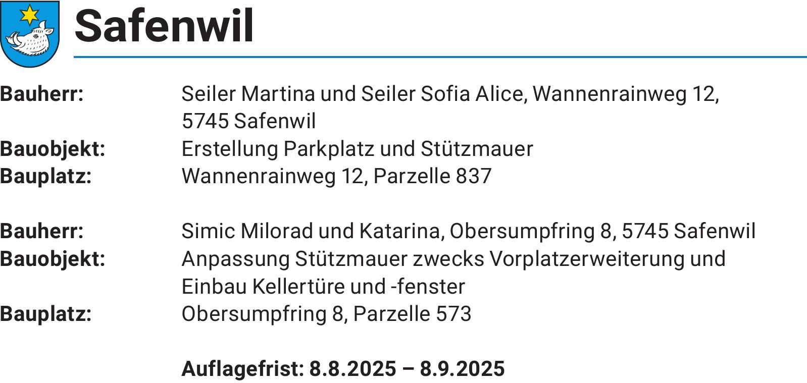 Sie sind hier: Home > Baugesuche > KW32_2025_Safenwil