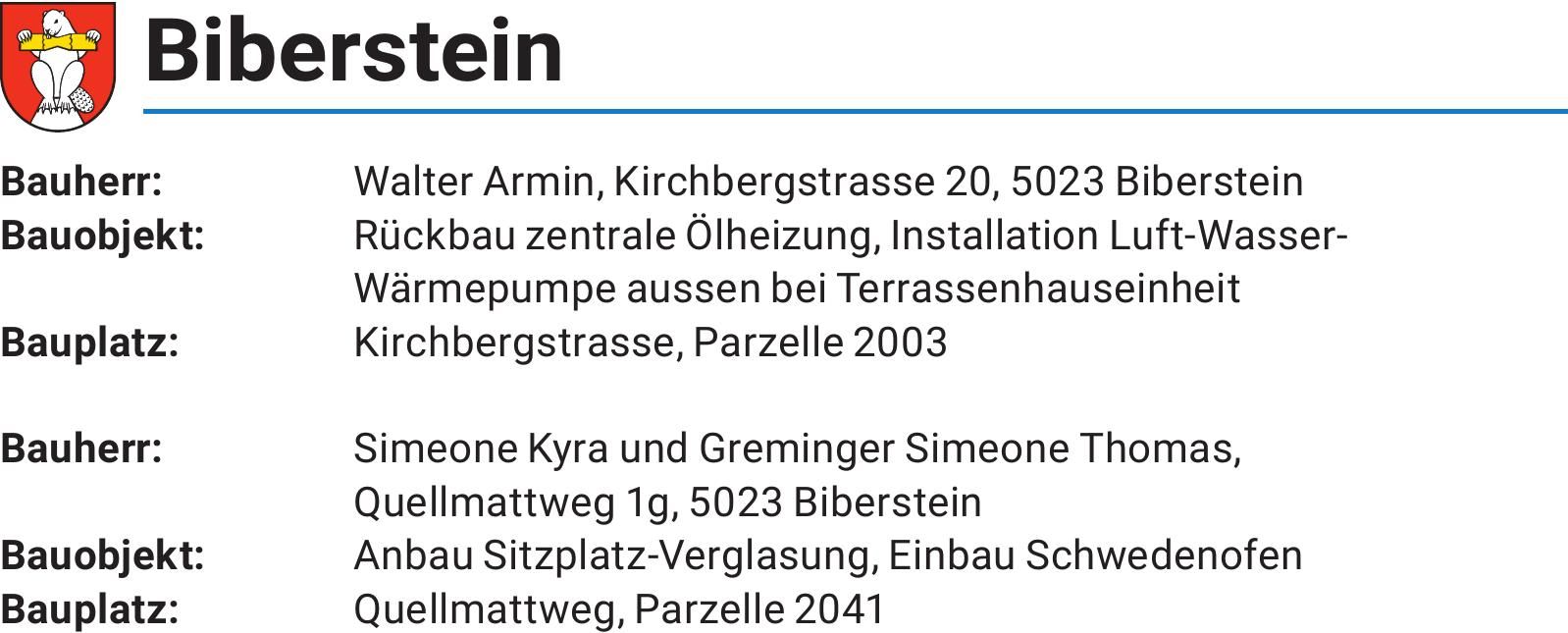 Sie sind hier: Home > Baugesuche > KW48_2024 – Biberstein