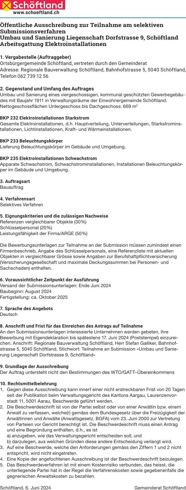 Öffentliche Ausschreibung zur Teilnahme am selektiven Submissio
