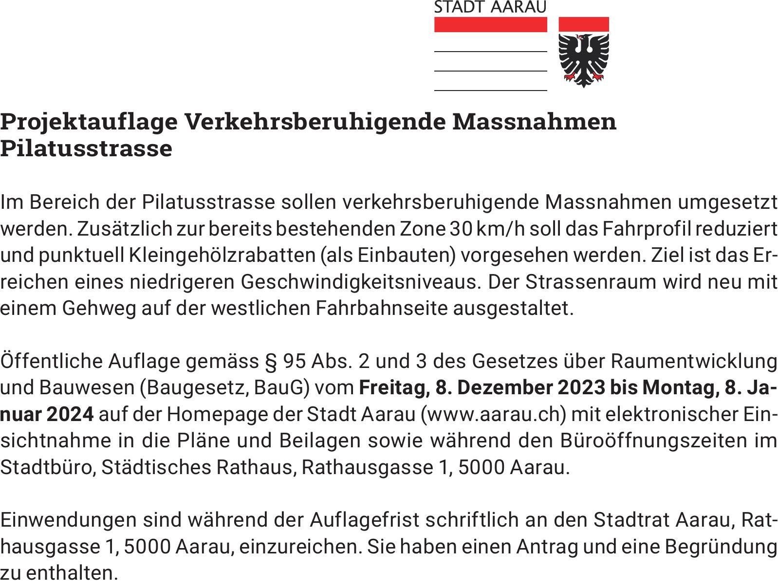 Projektauflage Verkehrsberuhigende Massnahmen Pilatusstrasse