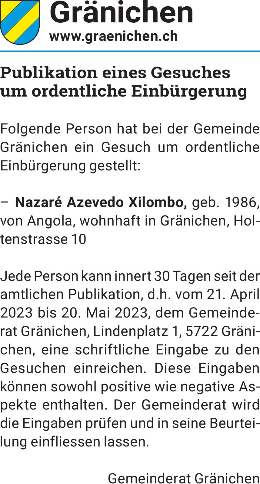 Publikation eines Gesuches um ordentliche Einbürgerung