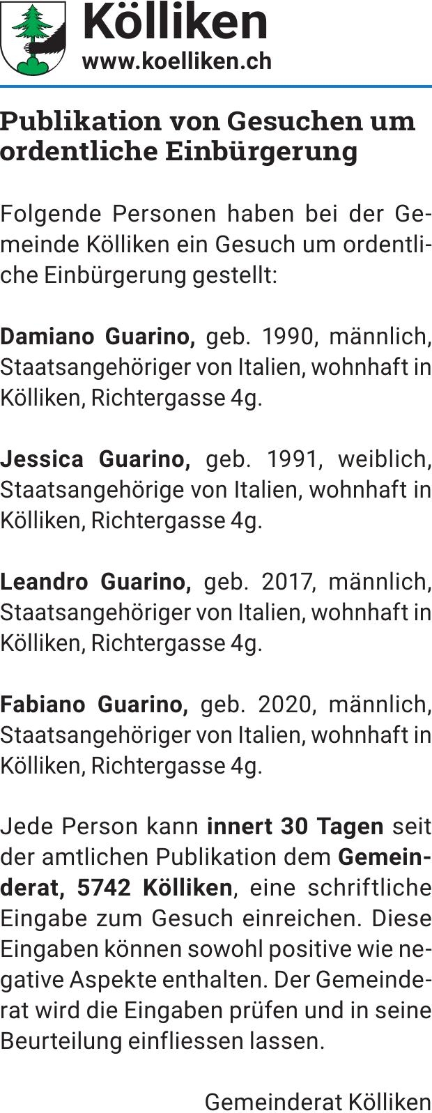 Publikation von Gesuchen um ordentliche Einbürgerung