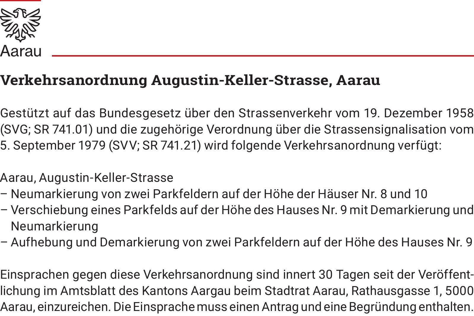 Verkehrsanordnung Augustin-Keller-Strasse, Aarau