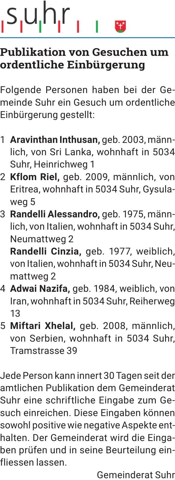 Publikation von Gesuchen um ordentliche Einbürgerung