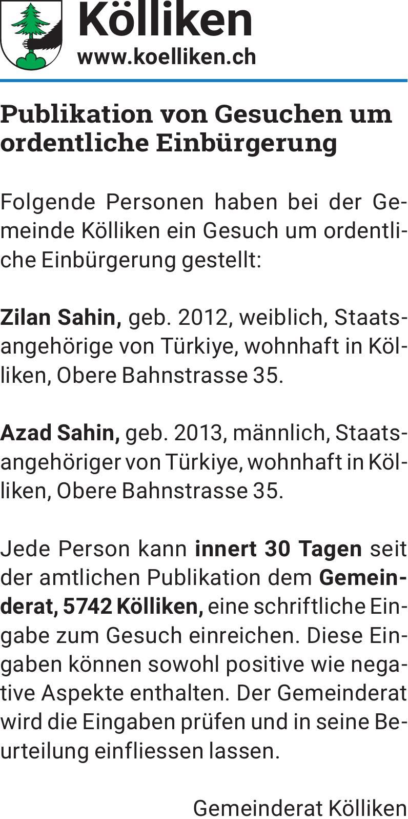 Publikation von Gesuchen um ordentliche Einbürgerung