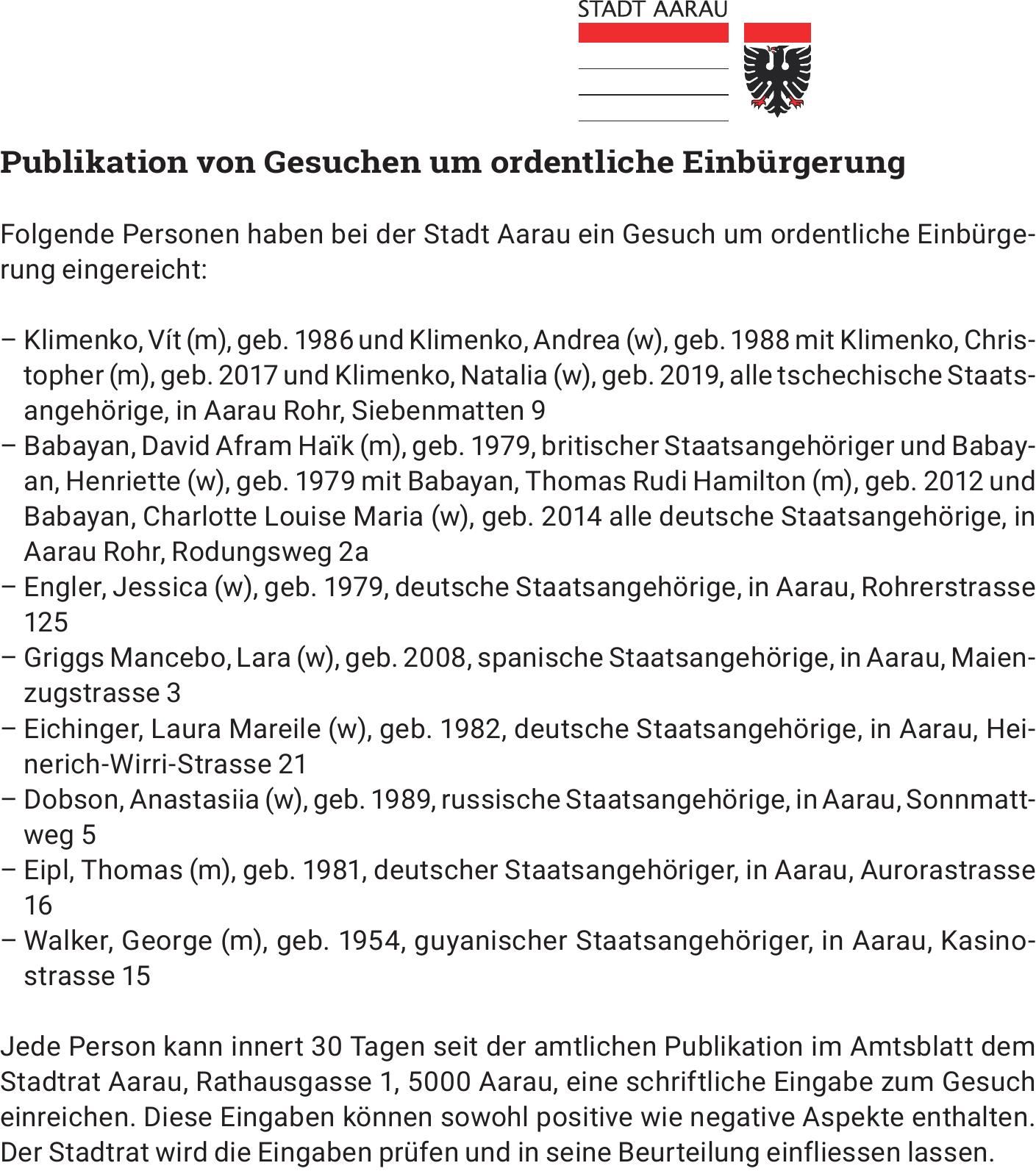Publikation von Gesuchen um ordentliche Einbürgerung