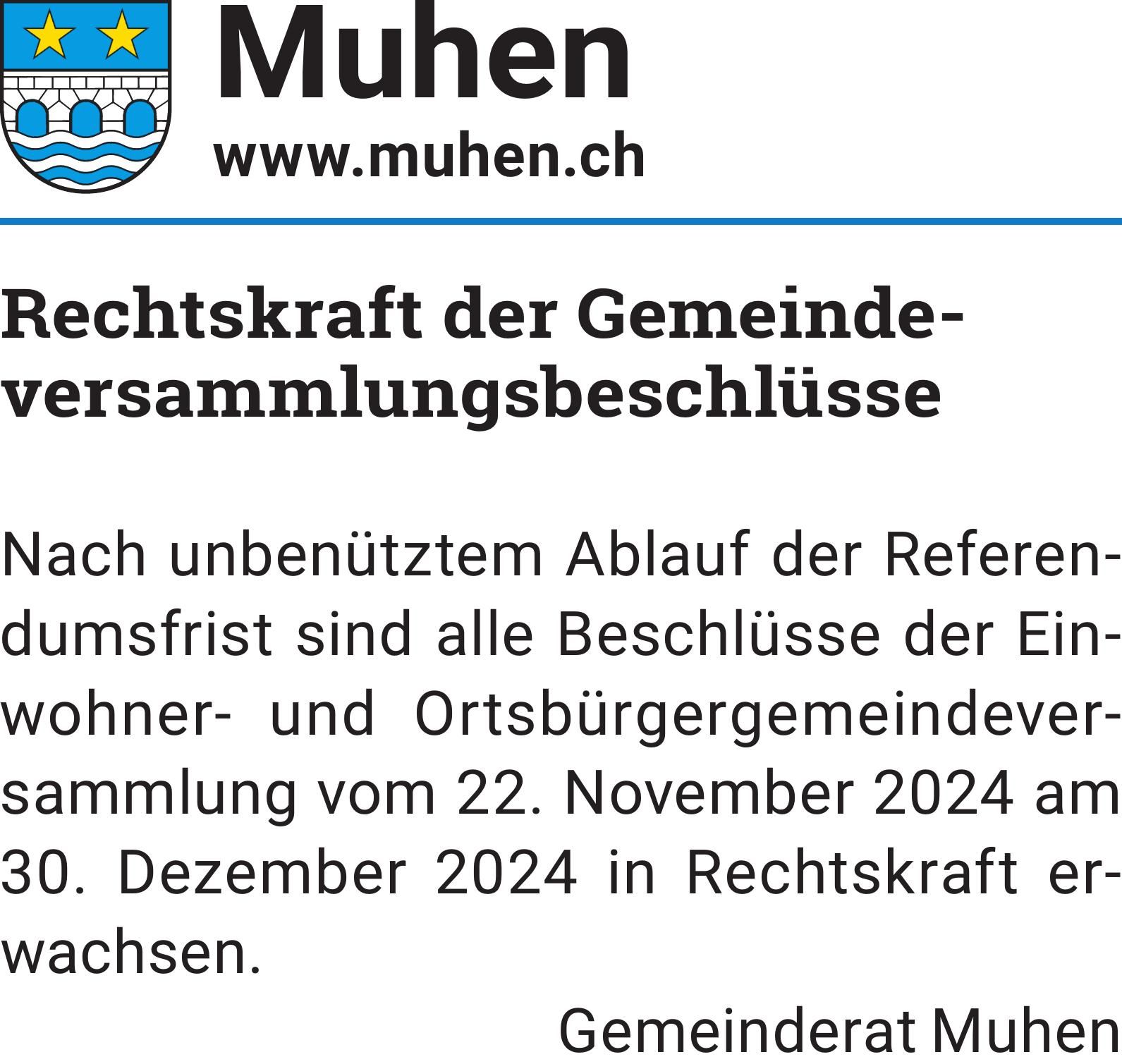 Rechtskraft der Gemeindeversammlungsbeschlüsse