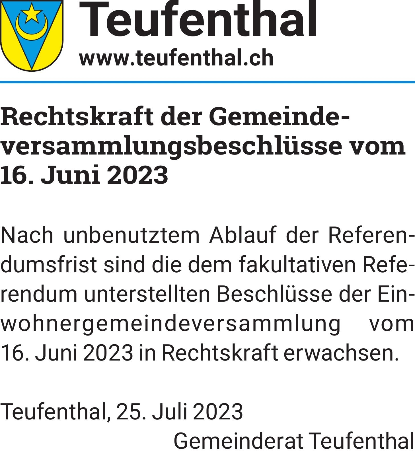 Rechtskraft der Gemeindeversammlungsbeschlüsse vom 16. Juni 20
