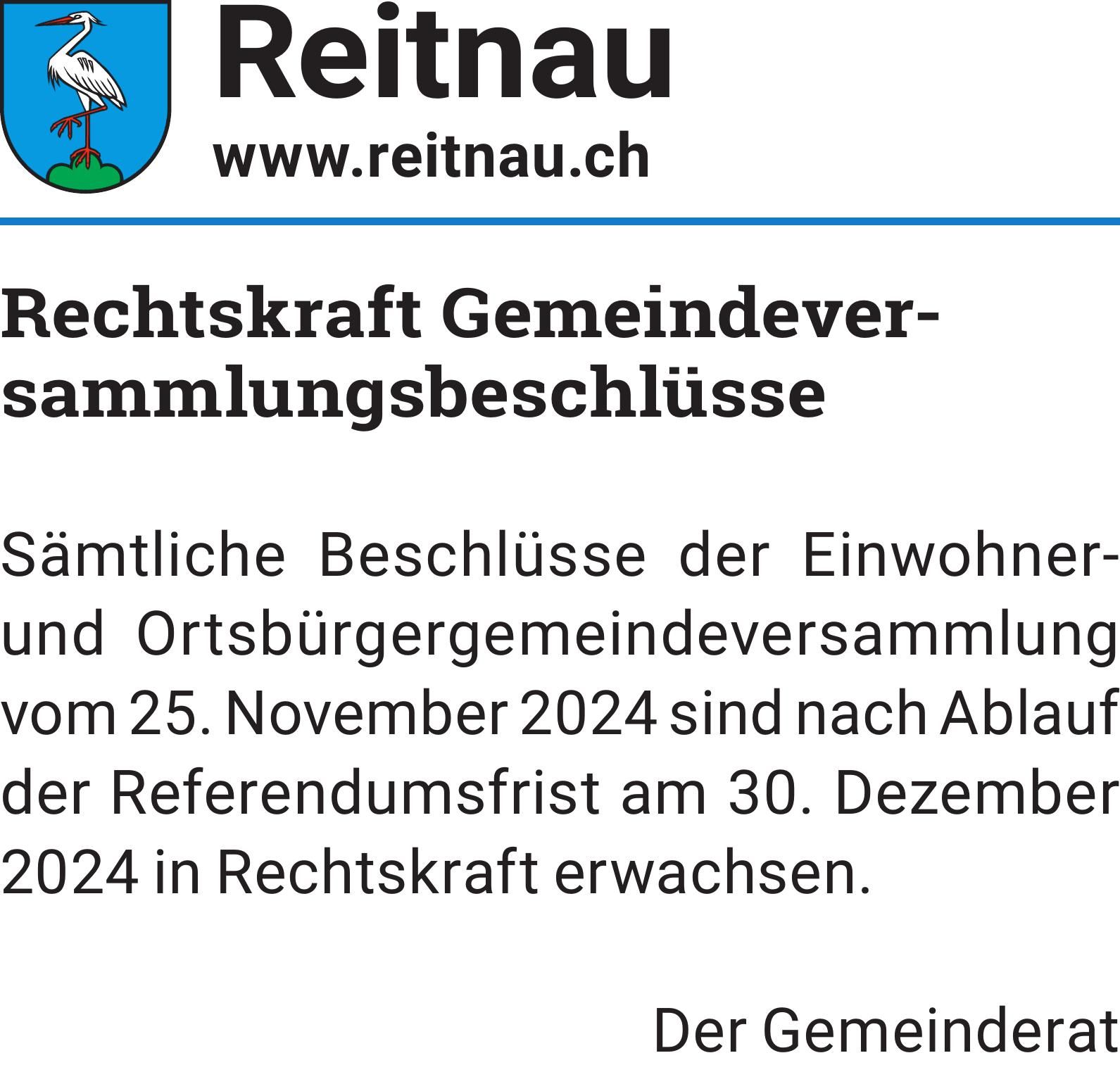Sie sind hier: Home > Amtliche Mitteilungen > Rechtskraft Gemeindeversammlungsbeschlüsse
