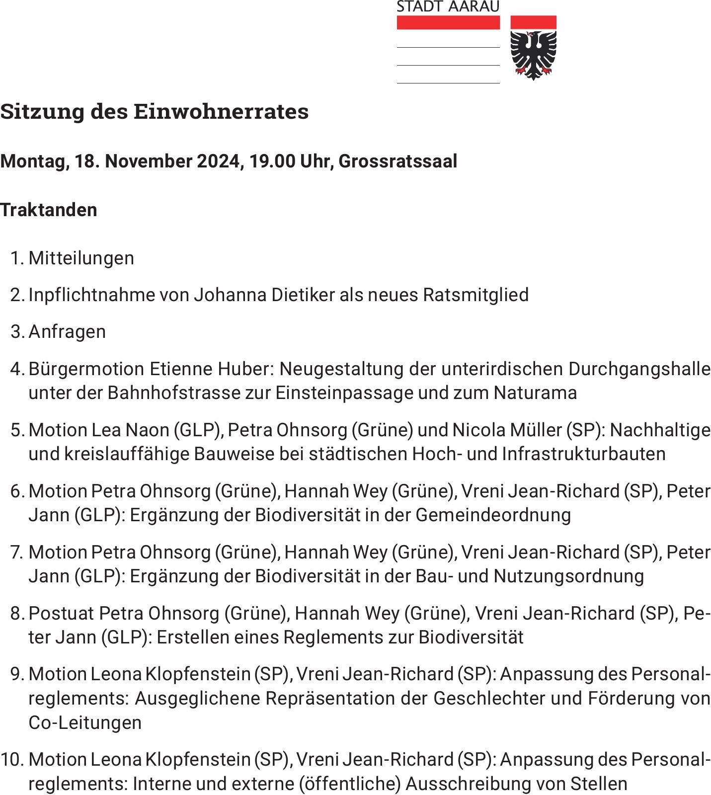 Beschlüsse des Einwohnerrats