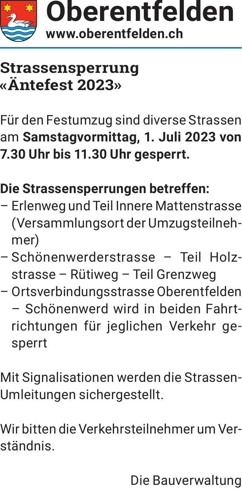Strassensperrung «Äntefest 2023»