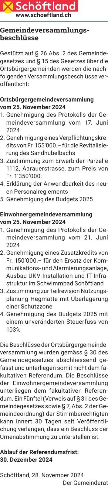 Beschlüsse der Gemeindeversammlung vom 22. November 2024_0001