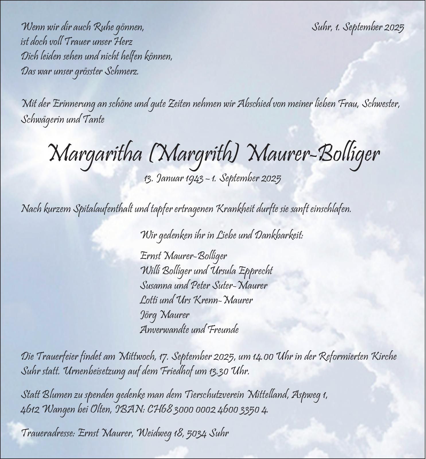 Margaritha (Margrith) Maurer-Bolliger