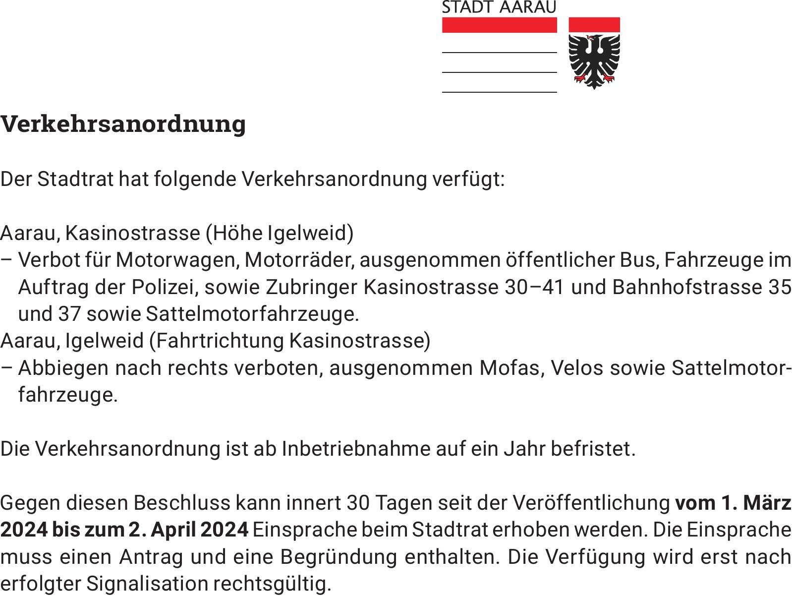 Verkehrsanordnung Augustin-Keller-Strasse, Aarau