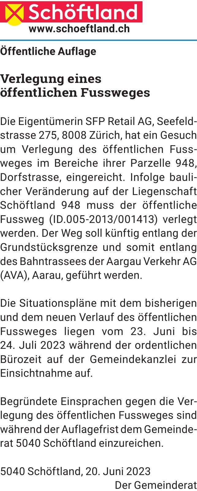 Sie sind hier: Home > Amtliche Mitteilungen > Verlegung eines öffentlichen Fussweges